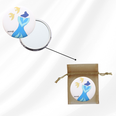 Miroir de poche d'une femme portant une robe, photographie prise sur une mosaïque à Nantes.
