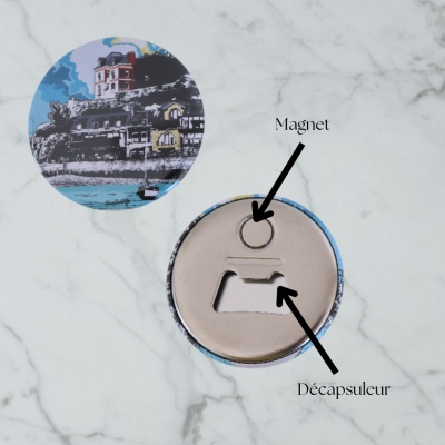 Magnet-décapsuleur du port de Dahouët à Pléneuf-Val-André sur la Côte de Penthièvre dans les Côtes d'Armor en Bretagne.