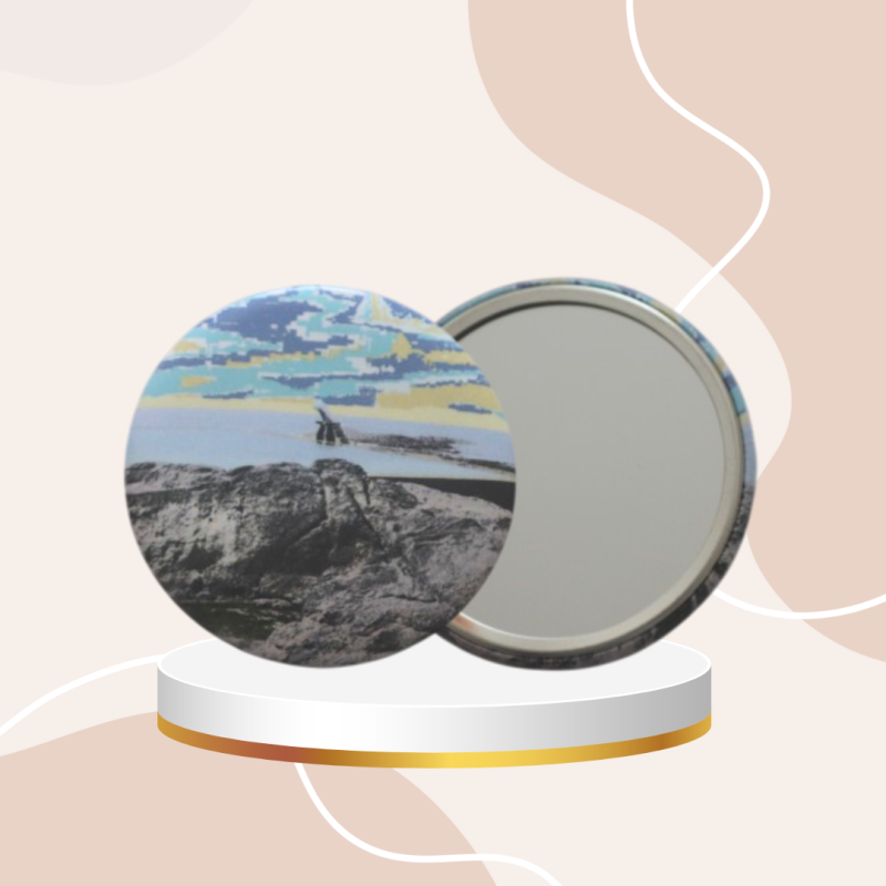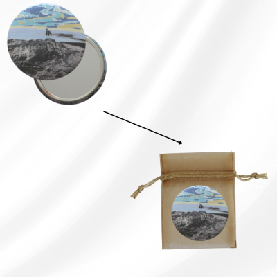 Miroir de poche illustré du Nez de Jobourg dans le Cotentin en Normandie.