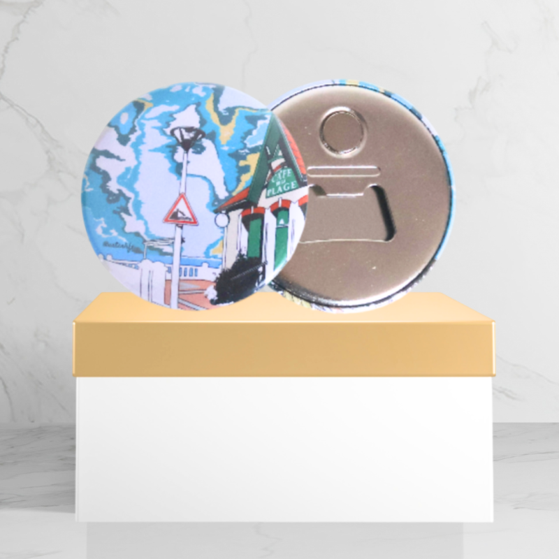 Magnet-Décapsuleur illustré du Café de la Plage à Sion sur l'Océan sur l'Ile de Noirmoutier en Vendée dans les Pays-de-la-Loire.