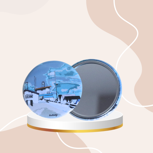 Miroir de poche illustré de la Digue-Promenade centrale de Courseulles-sur-Mer sur la Côte de Nacre en Normandie dans le Calvados.