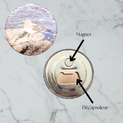Magnet-décapsuleur d'un goéland, photographie prise sur la côte sauvage de Quiberon.