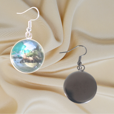 Boucles d'oreille en métal argenté composé d'un cabochon en verre et de diamètre 20mm.