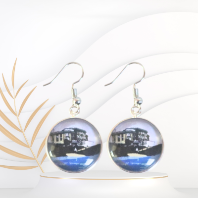 Boucles d'oreille illustrées de la piscine de mer de Saint-Quay Portrieux dans les Côtes d'Armor.