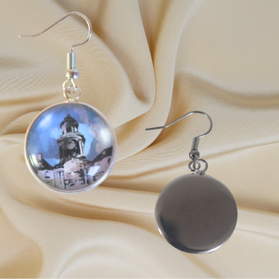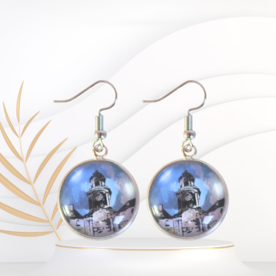 Boucles d'oreille illustrées de l'hôtel de ville de Rennes en Bretagne.