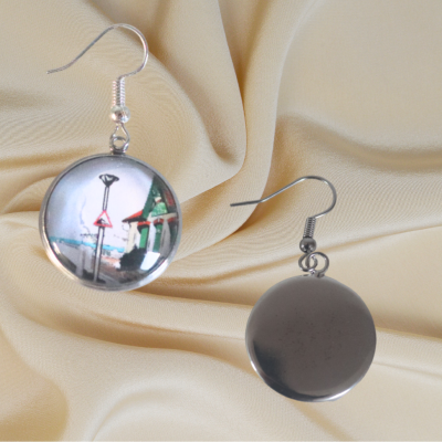 Boucles d'oreille en métal argenté composé d'un cabochon en verre et de diamètre 20mm.