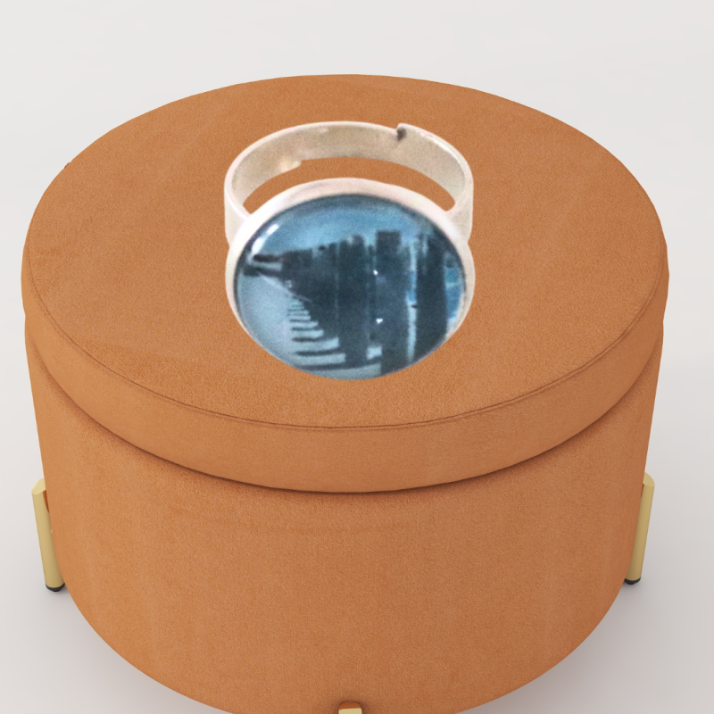 Bague illustrée d'une fleur de pin, photographie prise à Séné.