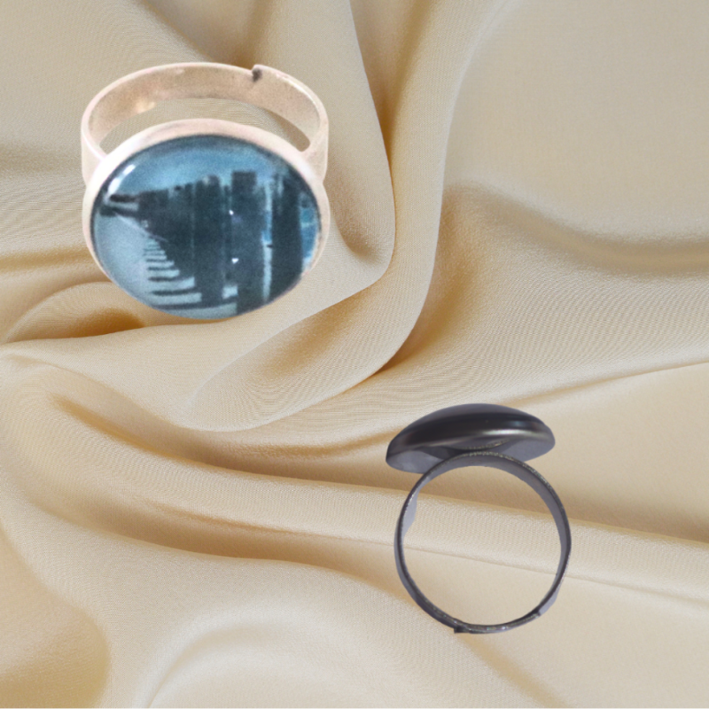 Bague en métal argenté composé d'un cabochon en verre et de diamètre 16mm.