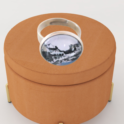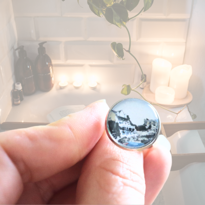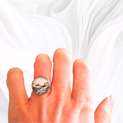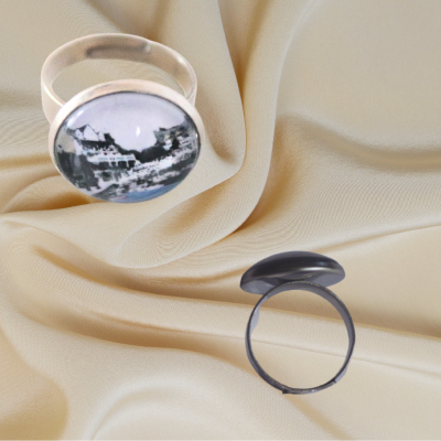 Bague illustrée de la cabane La Poulette à Agon-Coutainville sur la Côte des Isles en Normandie. Bague fabriquée artisanalement à partir d'une photographie prise par une créatrice bretonne.