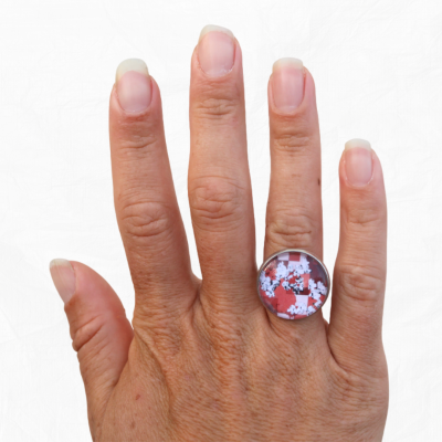 Bague en métal argenté composé d'un cabochon en verre et de diamètre 16mm.