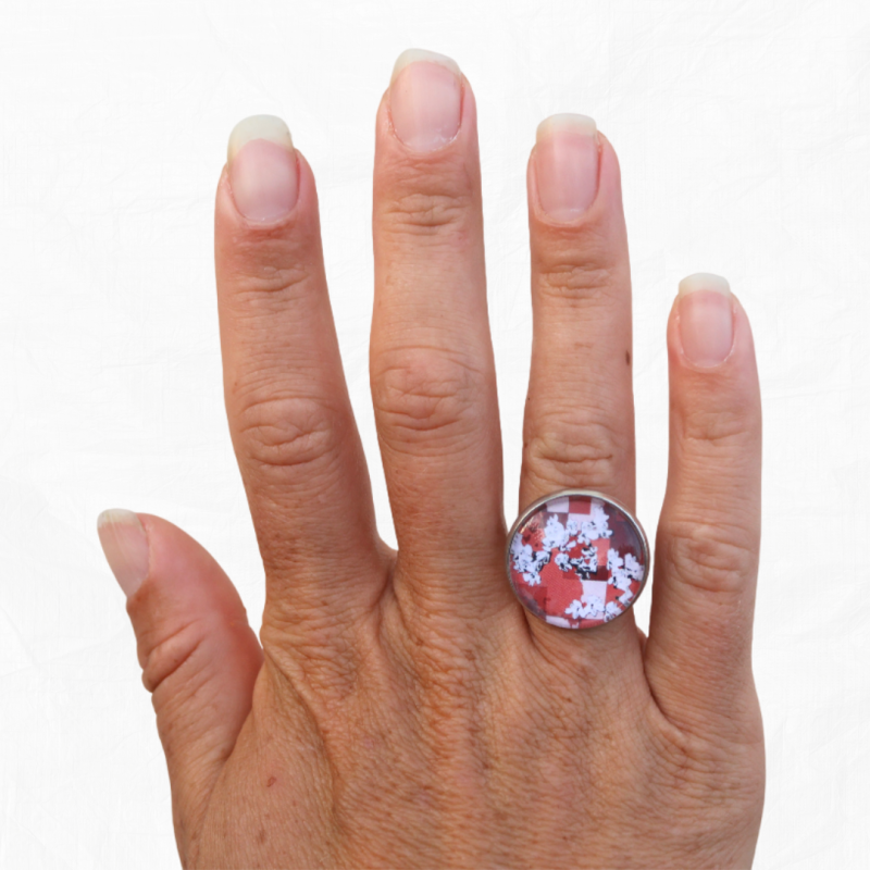 Matériaux : Cabochon en verre 16 ou 20 mm, support métal argenté ajustable, garanti sans chrome, sans métaux lourds, sans cadmium