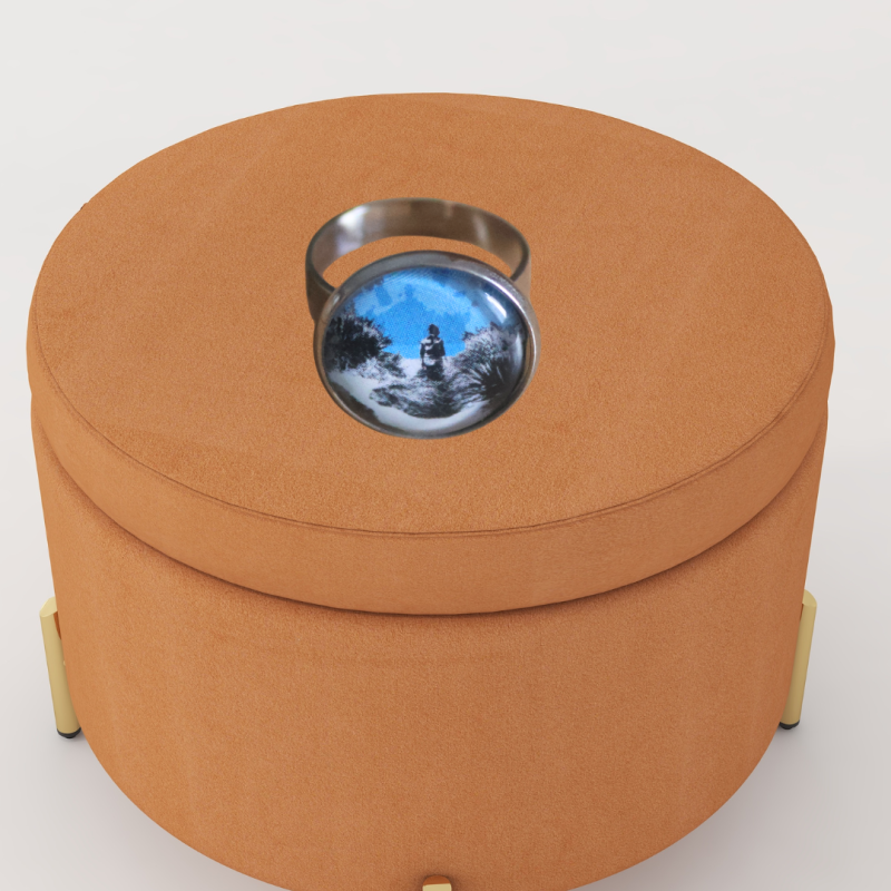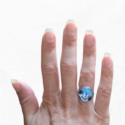 Bague illustrée des dunes de Gouville-sur-Mer sur la Côte des Isles en Normandie, réalisée artisanalement à partir d'une photographie prise par une créatrice bretonne.