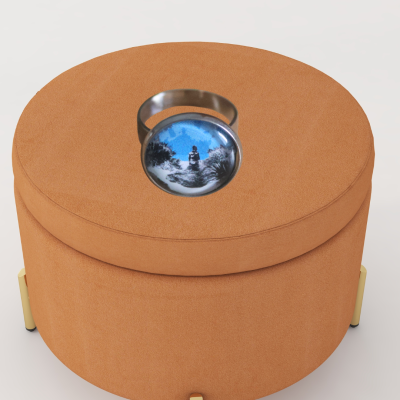 Bague en métal argenté composé d'un cabochon en verre de diamètre 20mm.