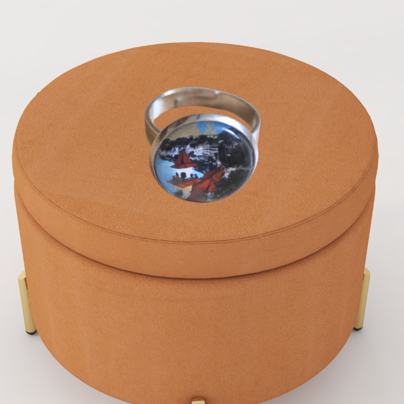 Bague illustrée de la cabane La Poulette à Agon-Coutainville sur la Côte des Isles en Normandie. Bague fabriquée artisanalement à partir d'une photographie prise par une créatrice bretonne.