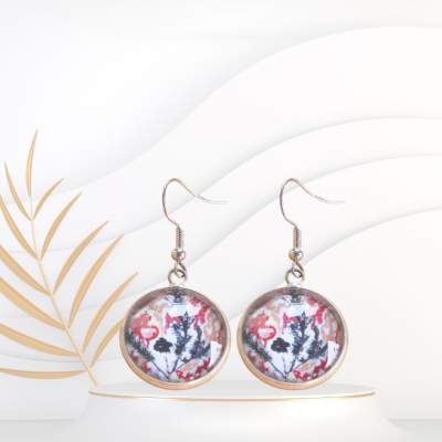 Boucles d'oreille illustrées d'un ibis rouge, photographie prise à Montpellier.