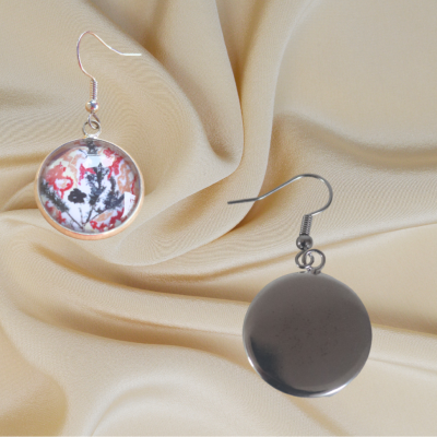 Boucles d'oreille en métal argenté composé d'un cabochon en verre et de diamètre 20mm.