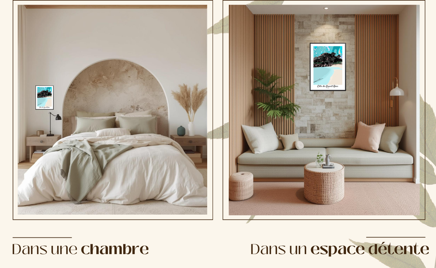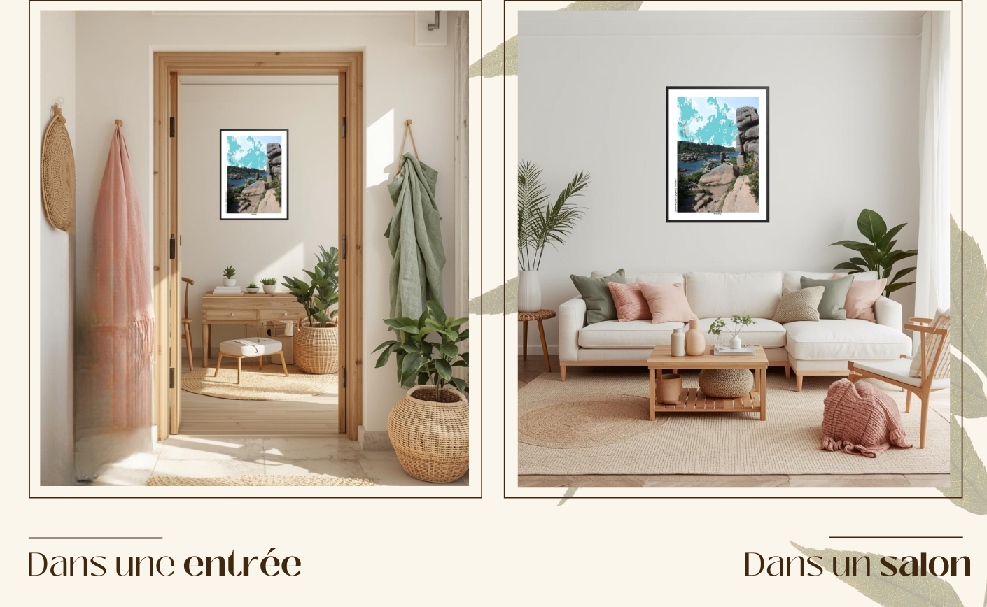 Cette page est pensée comme une invitation émotionnelle, mais aussi comme une source d’inspiration déco. Chaque affiche murale permet d’introduire chez soi un fragment de la Côte de Granit Rose, que ce soit dans une maison de vacances ou un intérieur urbain en quête d’évasion.