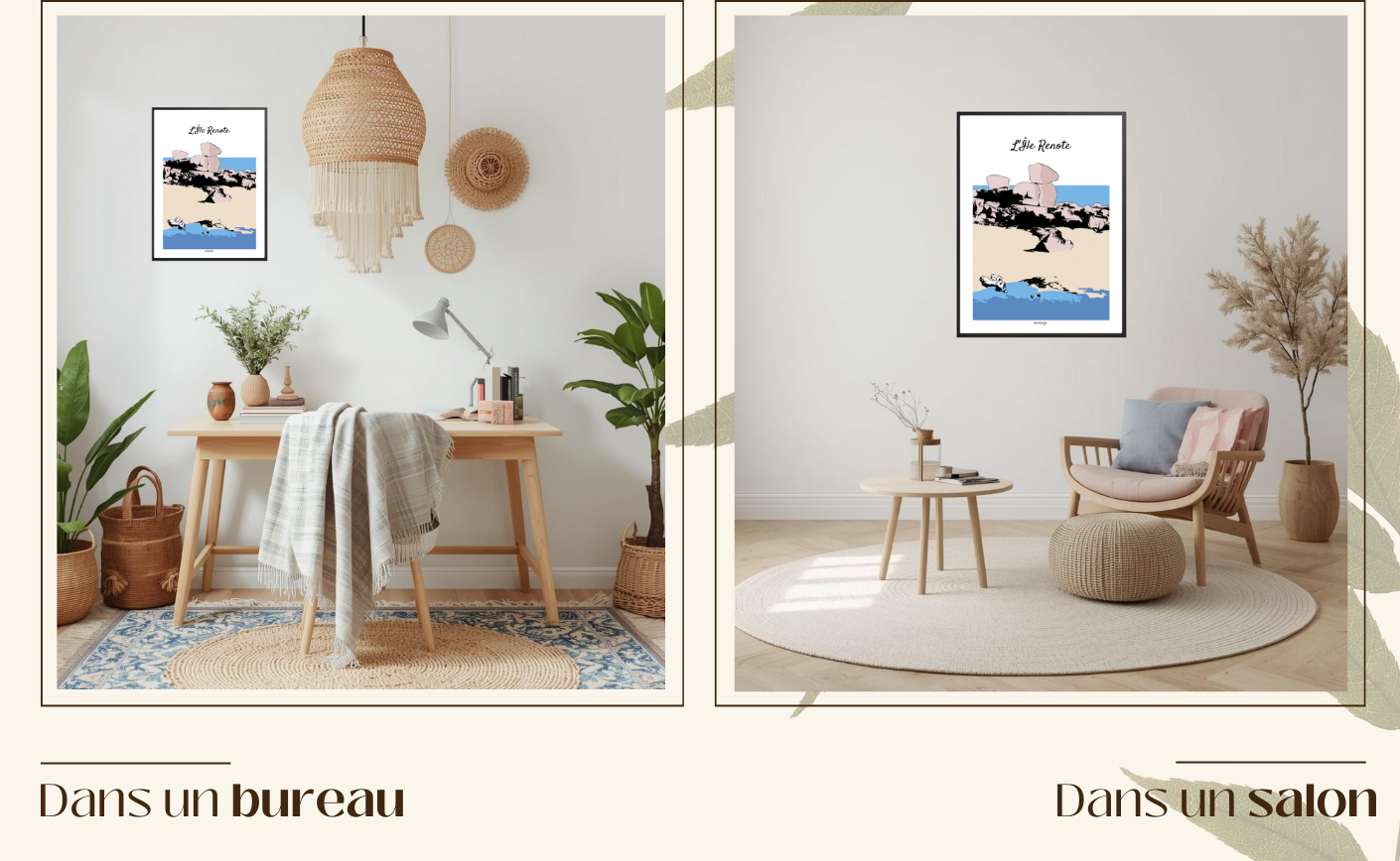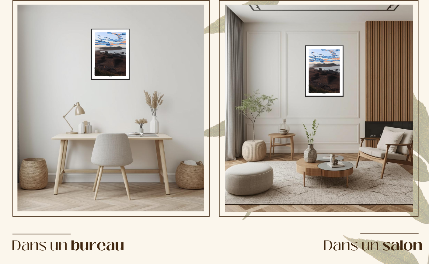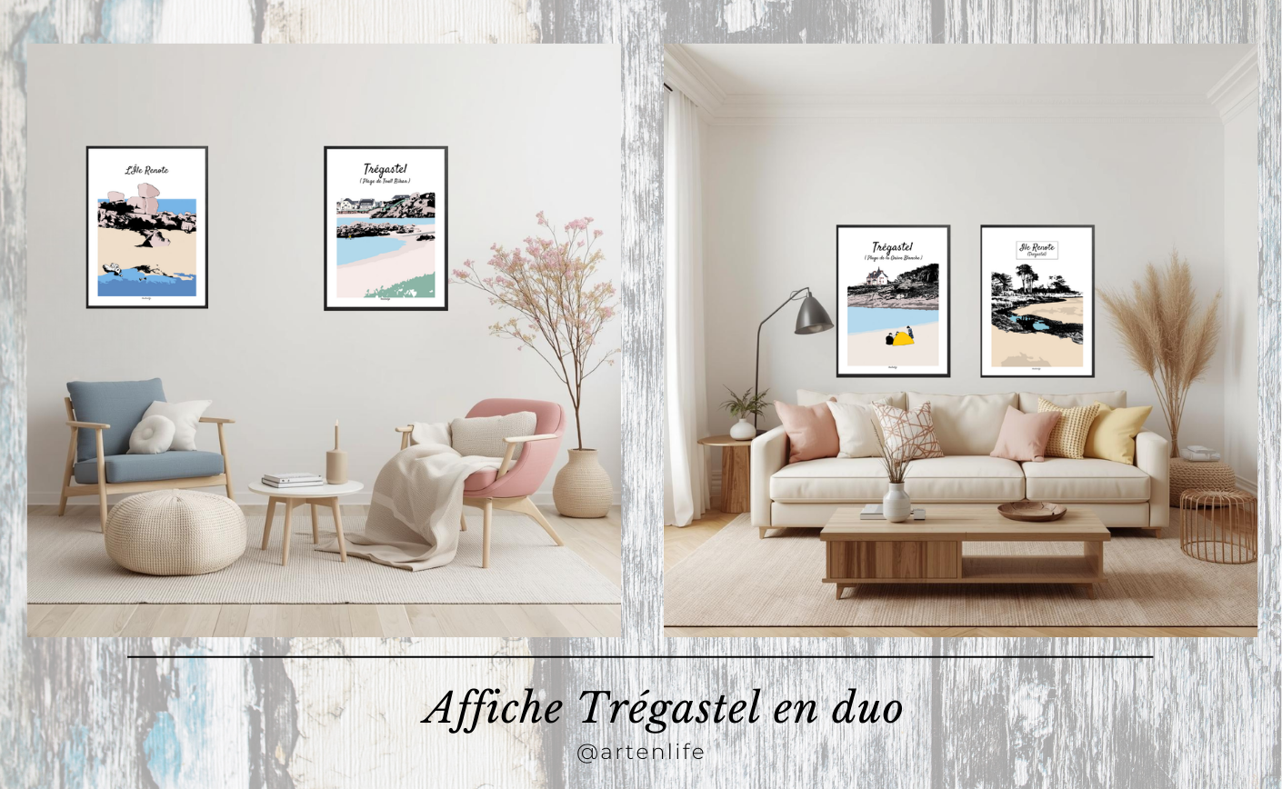 Cette page propose une expérience double : émotionnelle et décorative. Chaque affiche murale devient un fragment de Trégastel à intégrer chez soi, qu’il s’agisse d’un salon, d’une chambre ou d’une maison de vacances.