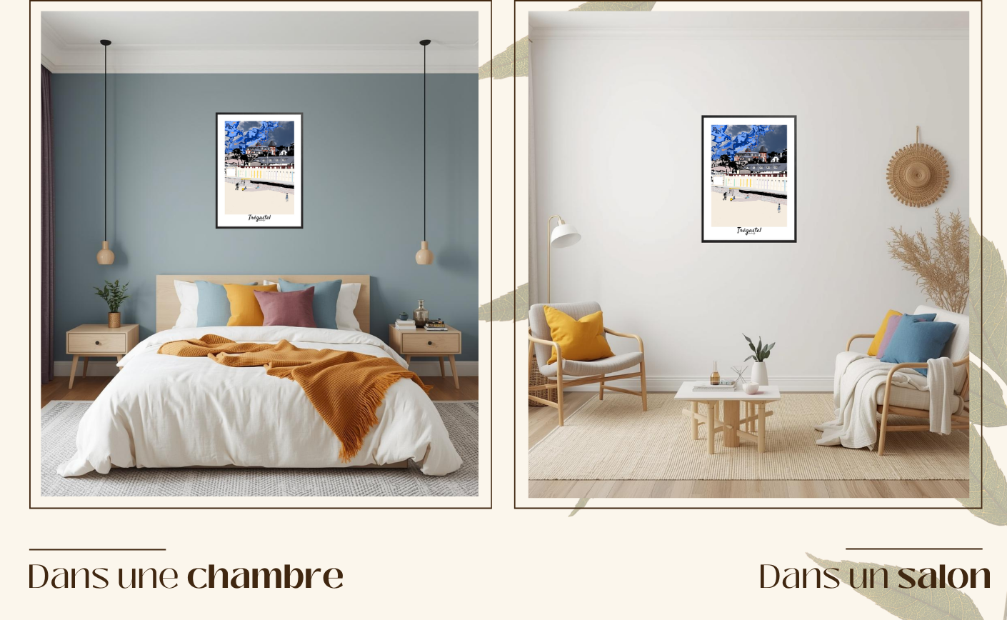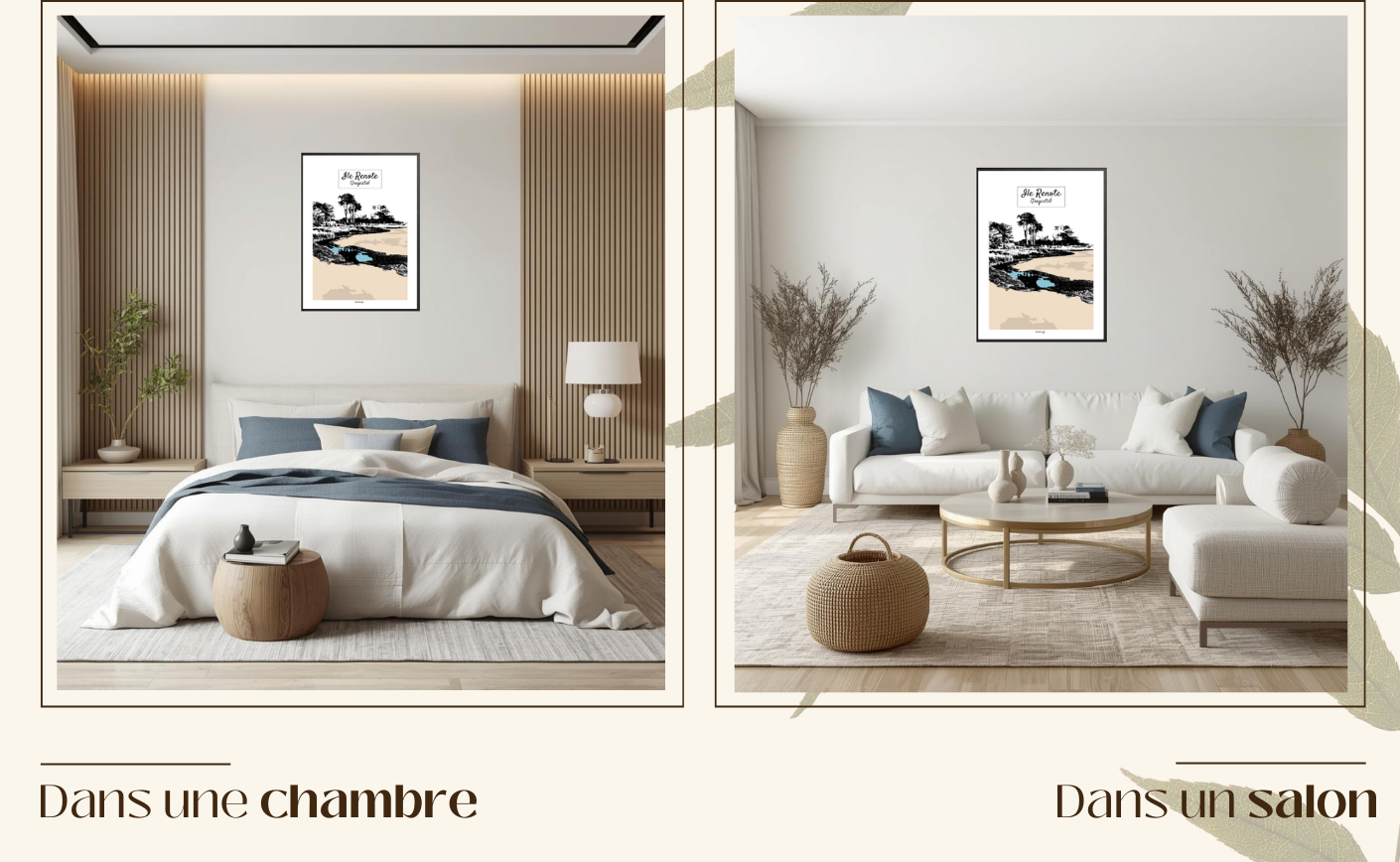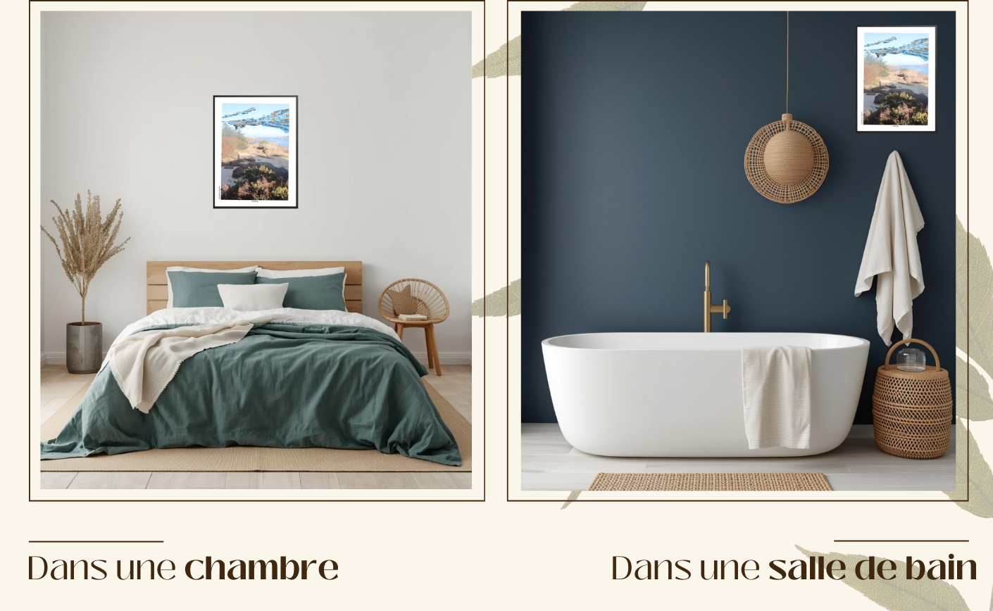 Cette page propose une expérience double : émotionnelle et décorative. Chaque affiche murale devient un fragment de Trégastel à intégrer chez soi, qu’il s’agisse d’un salon, d’une chambre ou d’une maison de vacances.