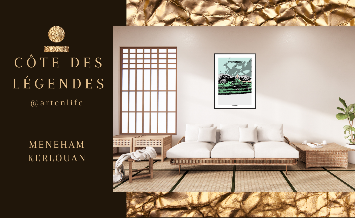 Meneham et ses rochers mythiques, entre granit et ciel breton, capturés dans une affiche à l’équilibre parfait entre tradition et modernité.