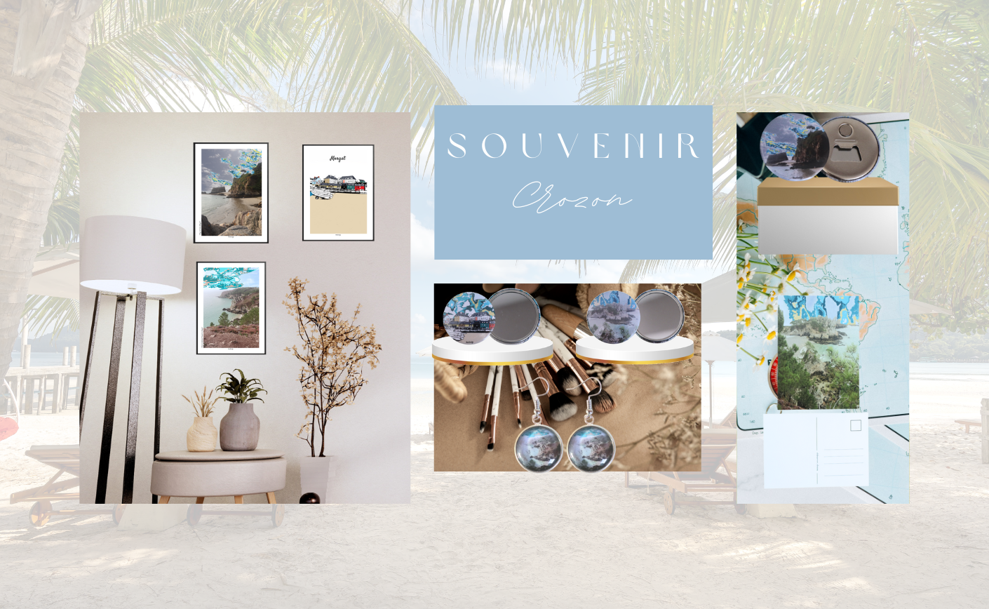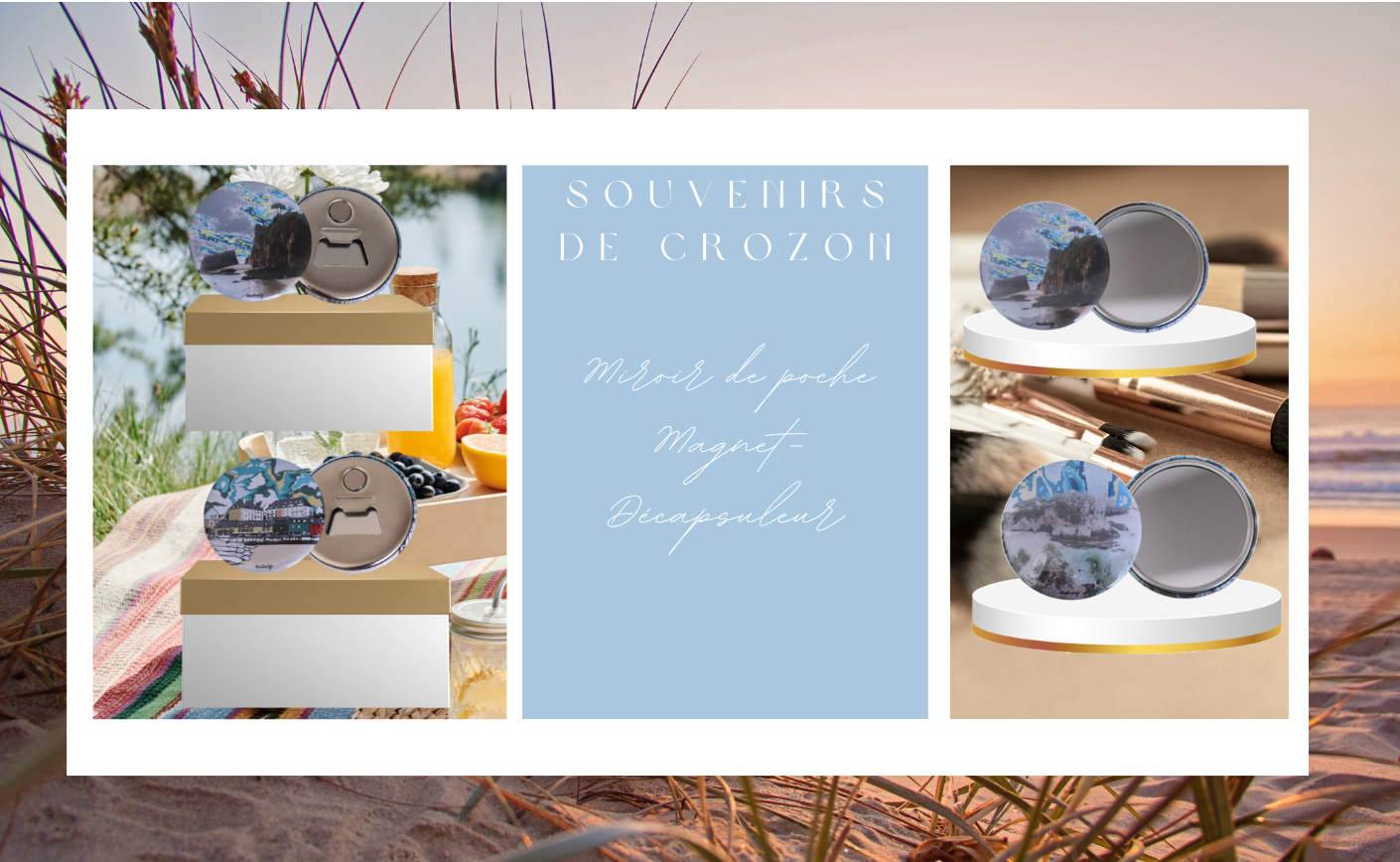 Mais voilà : les vacances passent. Alors pour prolonger l’évasion, voici une sélection de souvenirs de Crozon aussi esthétiques qu’émotionnels, à garder chez soi ou à offrir. Des affiches murales, bijoux, magnets, miroirs et même une carte postale d’exception – tous disponibles uniquement en ligne, conçus avec amour par une créatrice bretonne.