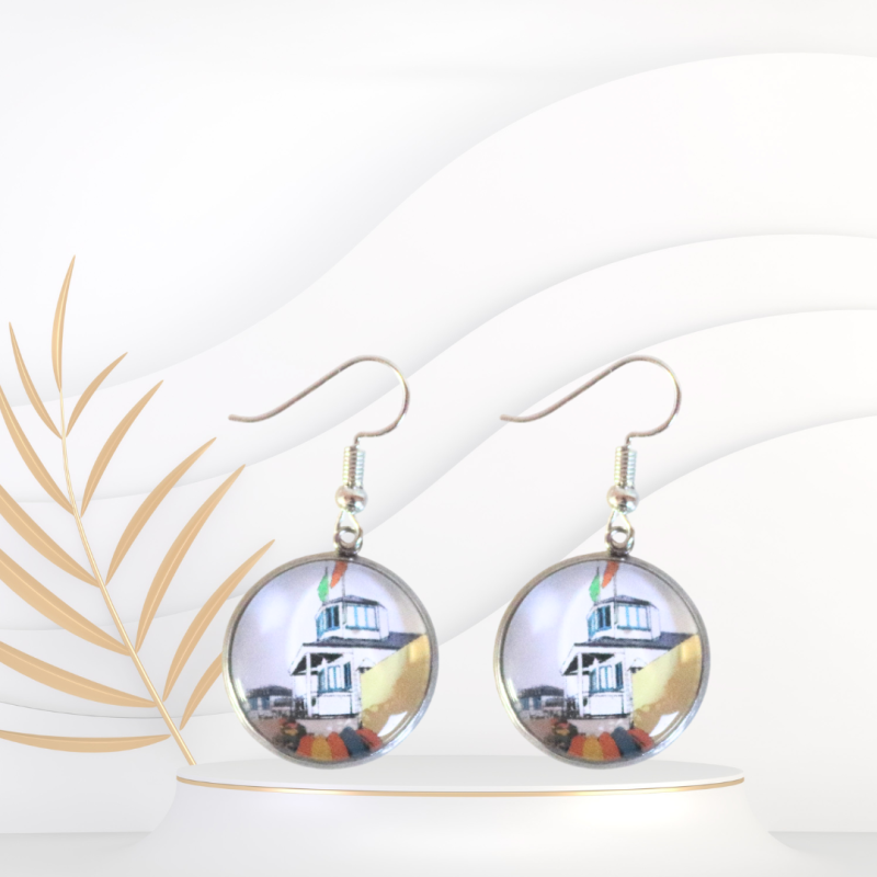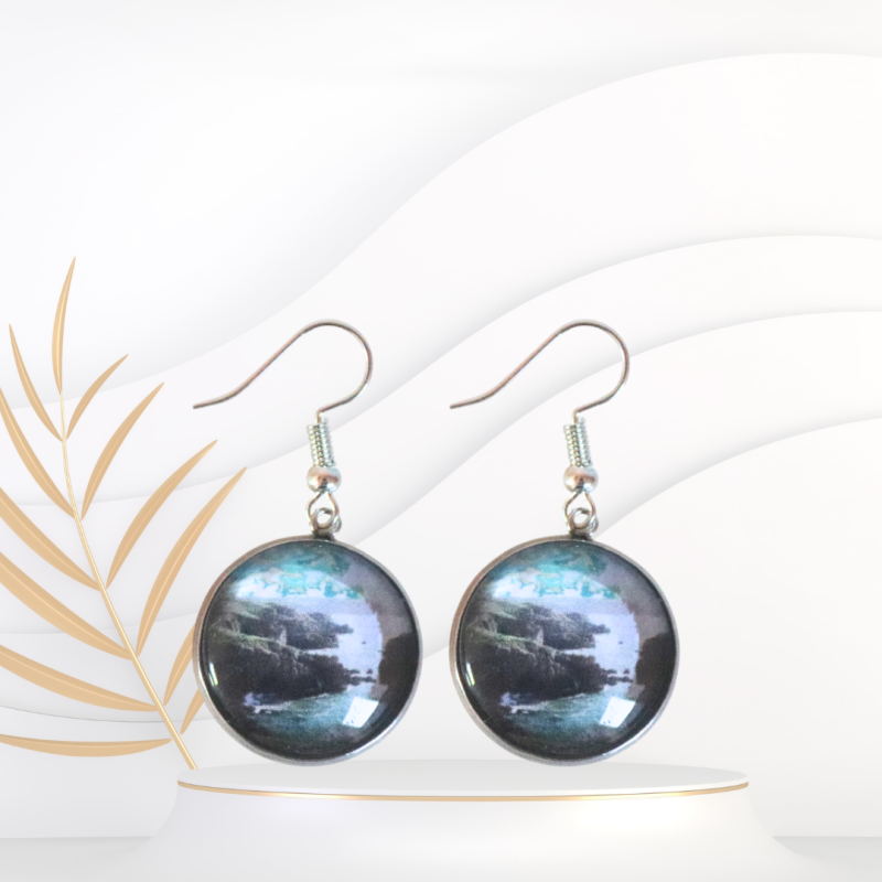 En métal argenté (sans cadmium, ni chrome, ni chlore), avec cabochon en verre. Diamètres 16 à 20 mm. Créations 100 % bretonnes.