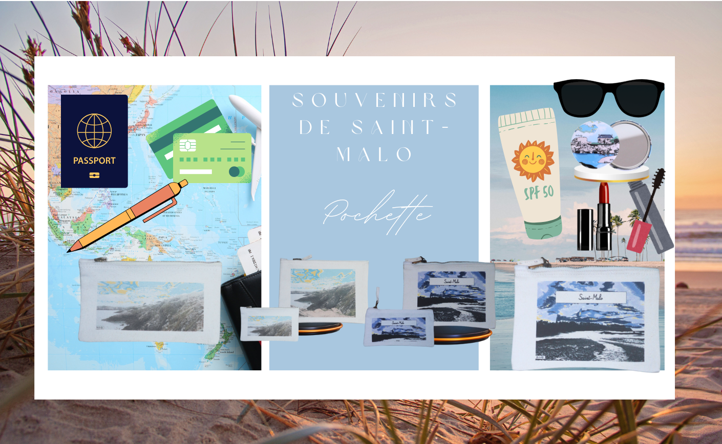 Ces pochettes en deux formats sont comme de petits bateaux pour vos affaires : stylos, passeport, rouge à lèvres, batterie de téléphone, carnet d’inspiration... À offrir ou à s’offrir, pour transporter un peu de Saint-Malo dans sa vie de tous les jours.