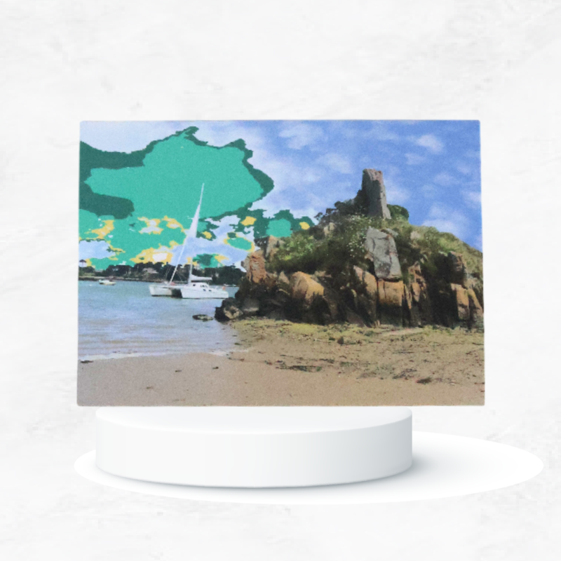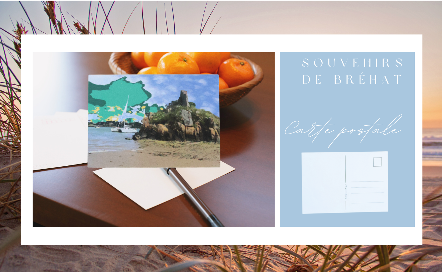 À 2,50€, c’est le souvenir malin par excellence. Format A6, légère, mais intense en émotions : un bout de paysage, une balade en amoureux, un rire entre amis. L’illustration de l’Îlot ar Prat y est sublimée. Et si tu ne veux pas l’envoyer, encadre-la, transforme-la en marque-page, ou glisse-la dans un cadeau typique breton pour un effet wahou. Un petit prix pour un grand souvenir.