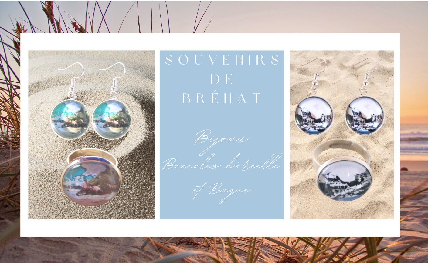 Îlot ar Prat (voir la bague / voir la boucle d'oreille): ciel vert, mer turquoise, plage fine. Idéal pour celles qui veulent se démarquer, tout en portant un bout d’été à l’oreille.