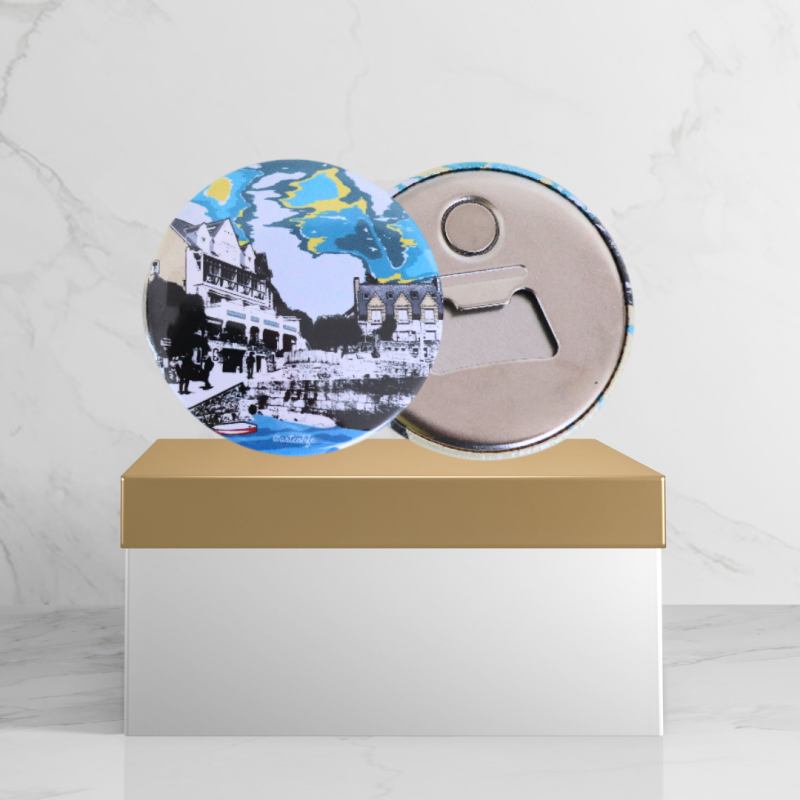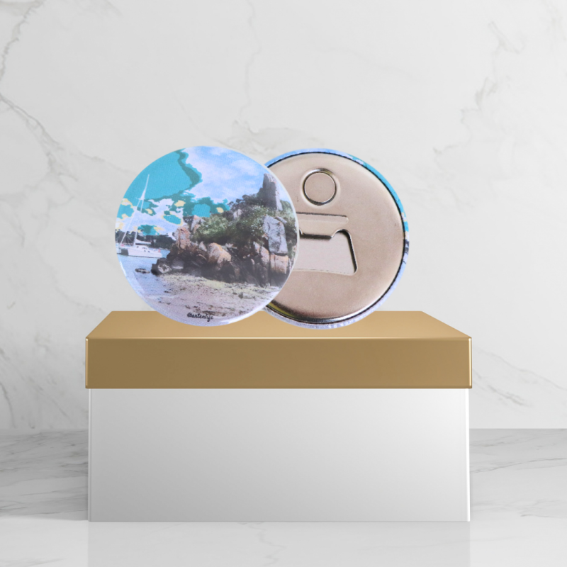 Double fonction : il colle au frigo et ouvre les bouteilles (pratique pour ta bière artisanale). À 8€, c’est le cadeau breton parfait, pour homme ou femme, avec illustrations :