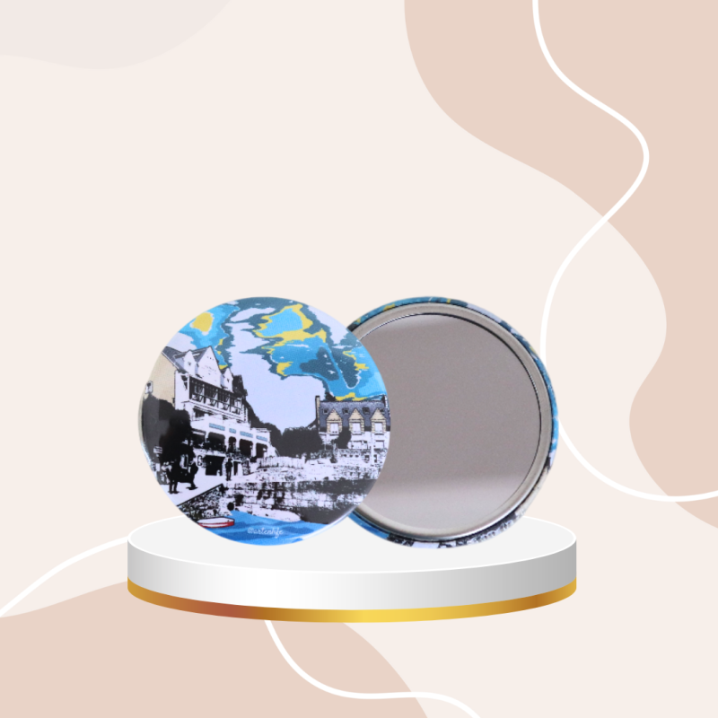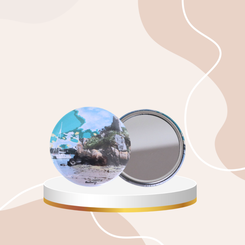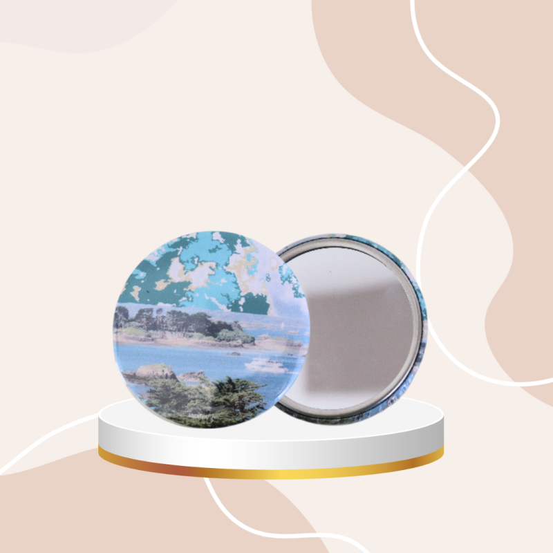 56mm de joie discrète. Il tient dans le sac, la poche ou même le vide-poche de la voiture. À 8€, c’est le souvenir utile des journées lumineuses à Bréhat. Parfait pour une retouche express, mais aussi comme petit miroir de sac pour ado, copine, ou maman nostalgique.