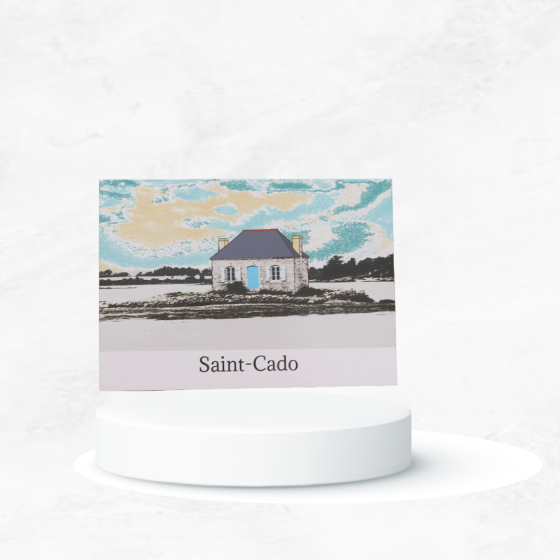 Saint-Cado et la maison de Nichtarguer, dans un style rétro verdâtre qui colle parfaitement à l’ambiance du lieu. Un classique indémodable pour ceux qui ont vu (et revu) cette maison perdue sur l’eau.