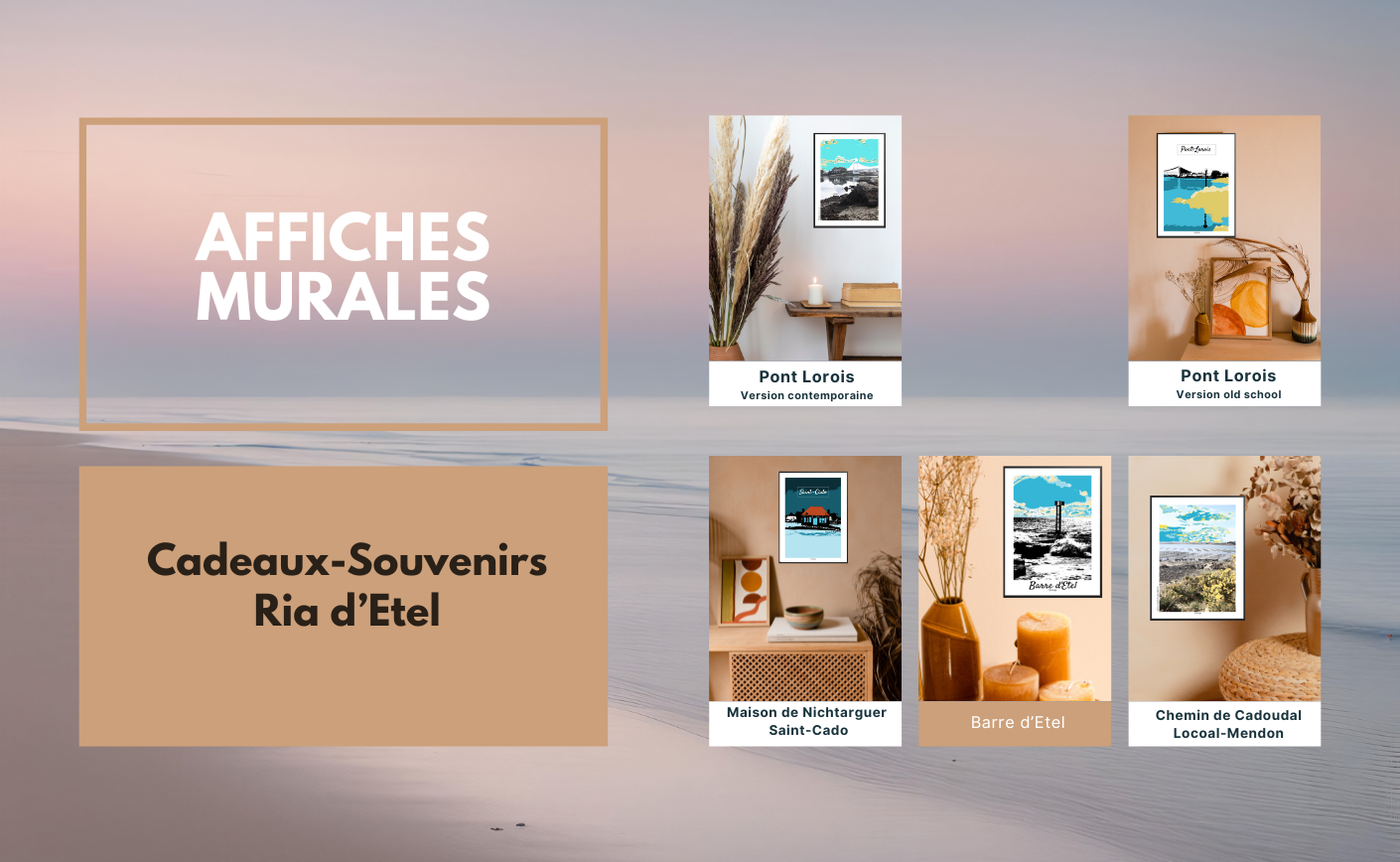 Du torchon automnal aux affiches dorées, en passant par les bijoux rétro ou les sacs à l’évasion facile, chaque création évoque un souvenir précis et sincère. Ces objets, faits avec passion et imprimés avec soin, sont là pour raconter une histoire, offrir une émotion, ou simplement prolonger les bons moments passés sur la Ria d’Étel ou dans ses alentours.