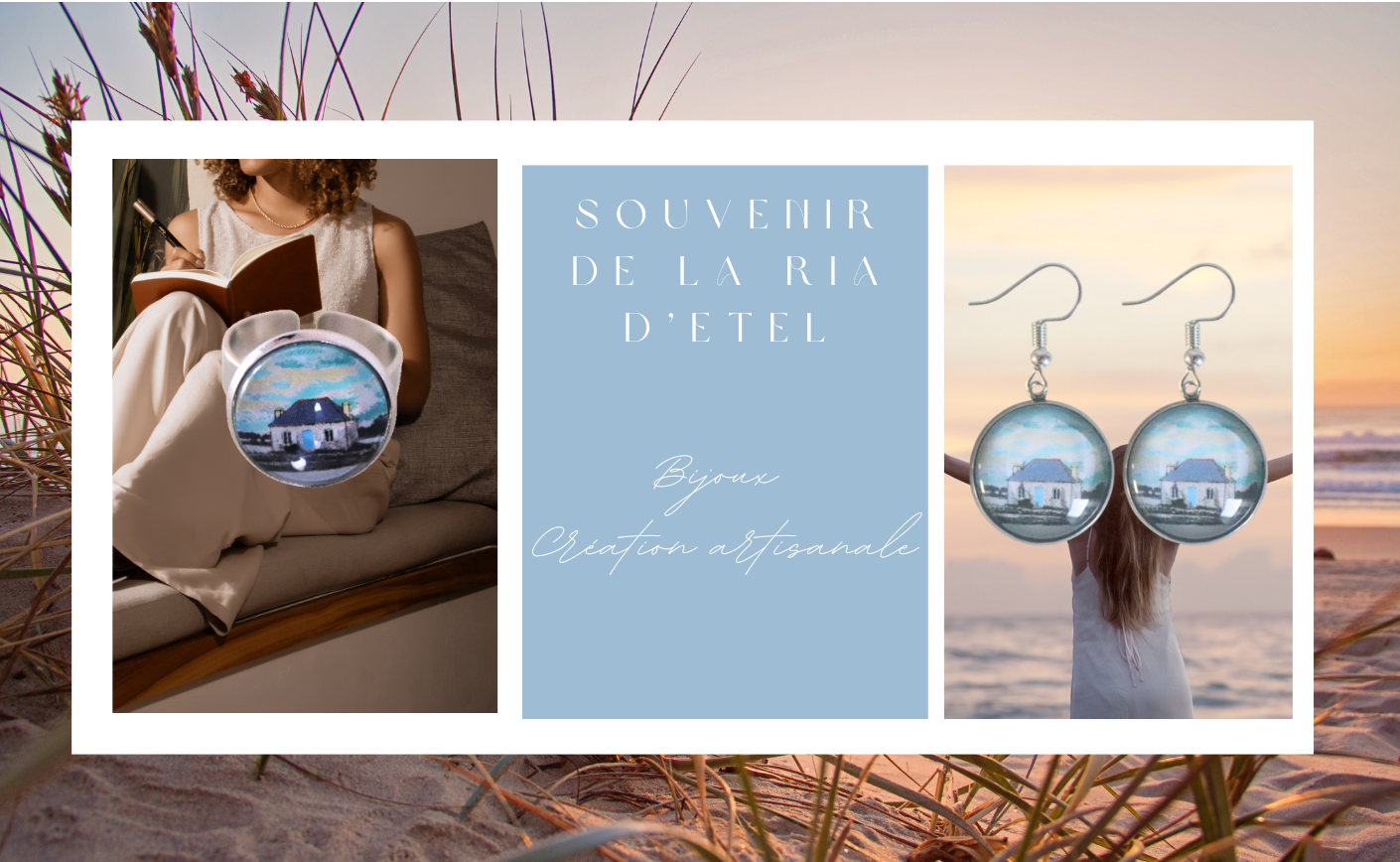 Bague 20 mm et boucles d'oreille assorties : pour celles qui veulent garder un morceau de la Ria sur elles, toute l’année. Un cadeau souvenir délicat pour les amoureuses de Bretagne.