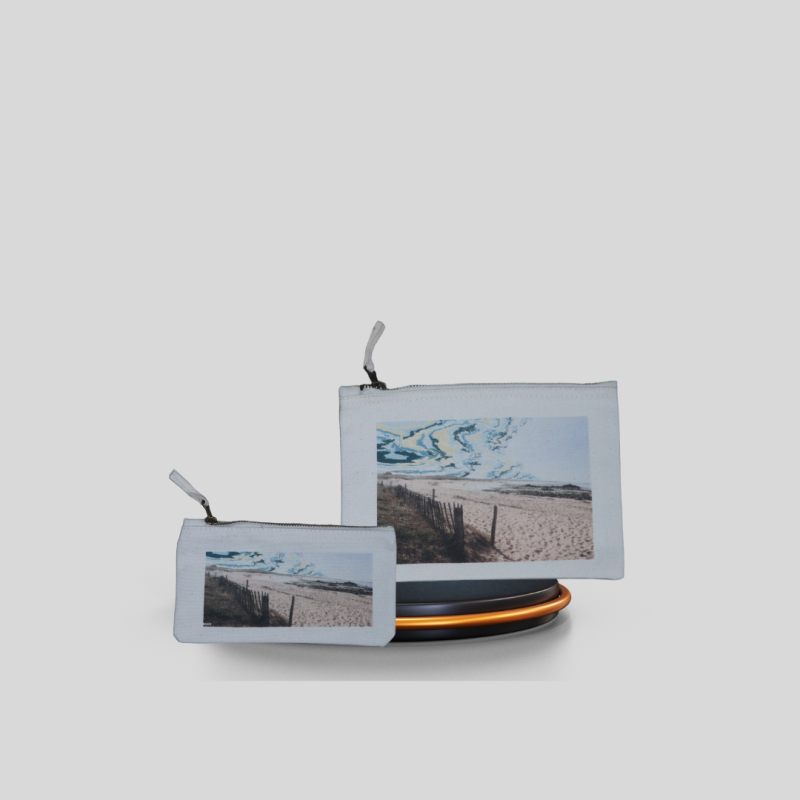 Inspirée de la plage de Kerhilio à Erdeven, située à quelques kilomètres de la Ria, cette pochette zippée en tissu 350g invite à la déconnexion. Son visuel évoque le zénith d’une journée d’été, avec ses sables blonds, son ciel pastel et ses eaux apaisantes. Idéale pour y glisser crème solaire, lunettes ou essentiels de la journée.