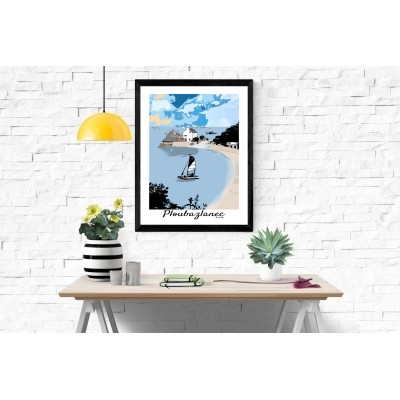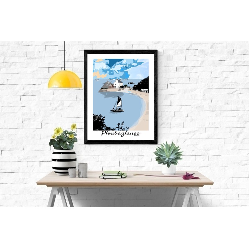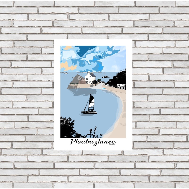 Affiche de la plage de Gouzien à Beg Meil, Fouesnant dans le Finistère sud en Bretagne.