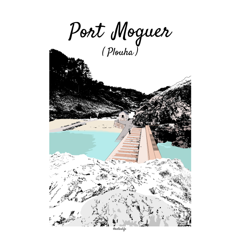 Affiche illustrée de la plage du Kelenn à Carantec dans le Finistère Nord en Bretagne.