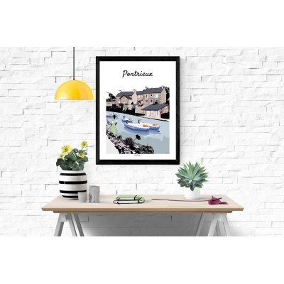 Affiche illustrée du port à Plougastel-Daoulas sur la Rade de Brest dans le Finistère Nord en Bretagne.