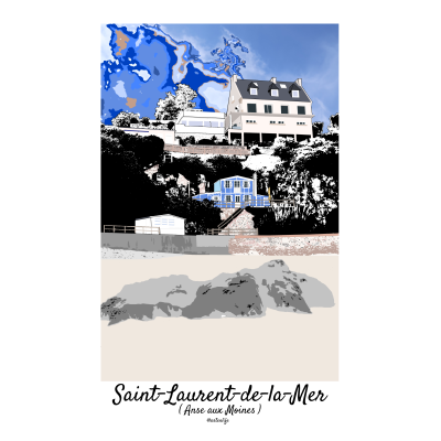 Affiche illustrée de la plage centrale de Lion-sur-Mer sur la Côte de Nacre dans le Calvados en Normandie.