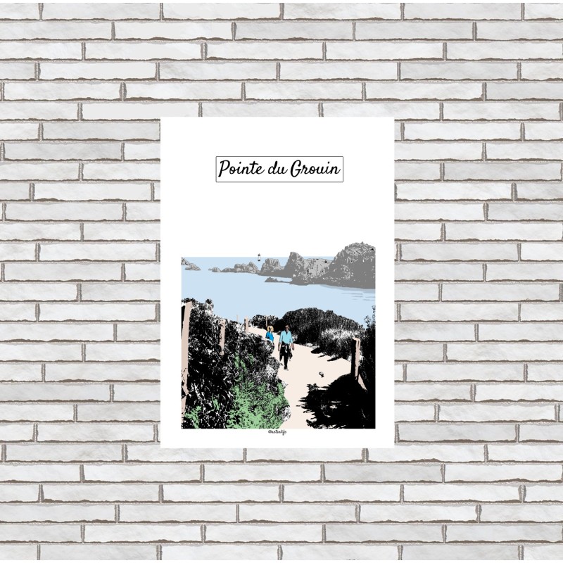 Affiche illustrée de l'île Wrac'h à Plouguerneau dans le Finistère Nord en Bretagne.