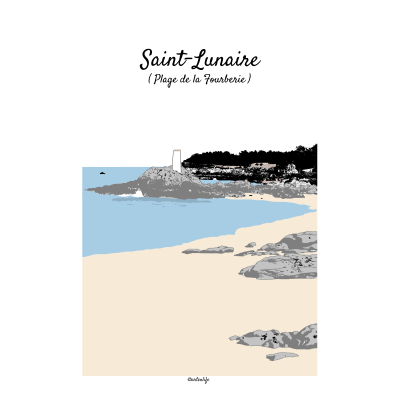 Affiche de la Grande-Plage de Saint-Lunaire avec ses cabines de plage colorées.
