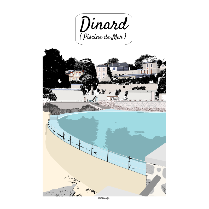 Affiche illustrée de la plage des Curés à Plougonvelin sur la Rade de Brest dans le Finistère Nord en Bretagne.