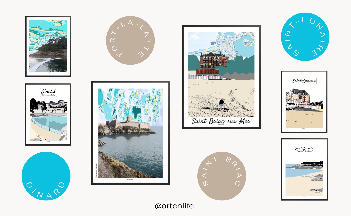 “Entre reflets turquoise, horizons infinis et architecture balnéaire, chaque affiche Côte d’Émeraude raconte une histoire de mer et de lumière.”