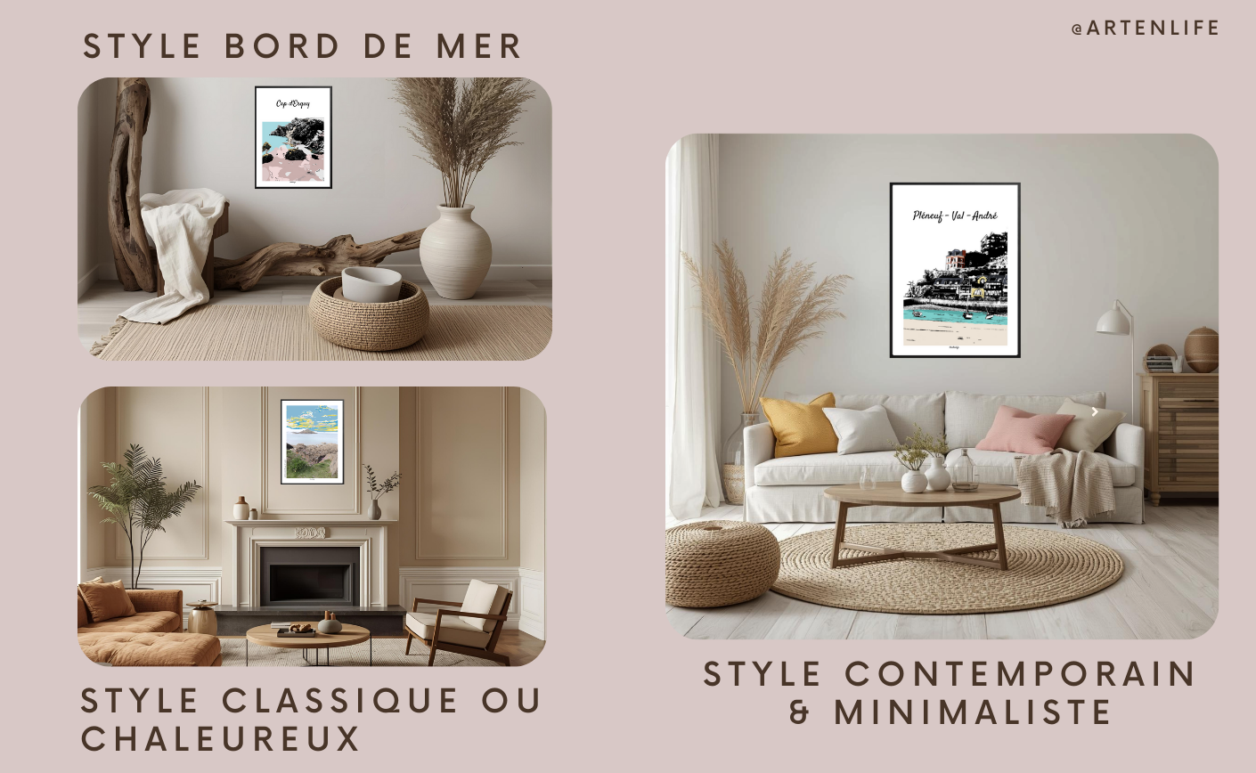 Pensées pour s’adapter à tous les univers, ces affiches déco Côtes d’Armor trouvent naturellement leur place dans différents styles d’intérieur :
