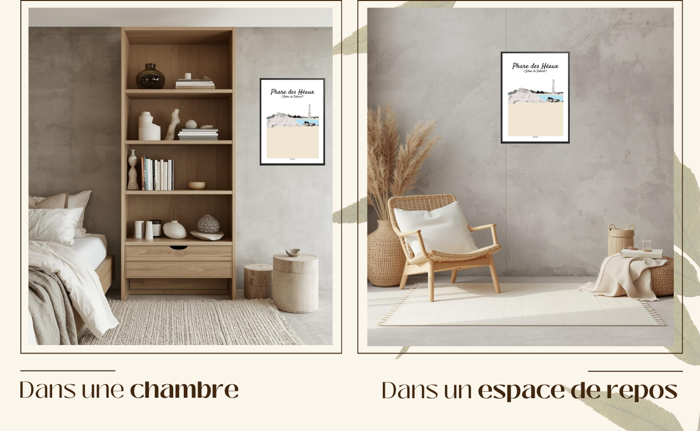 En décoration intérieure, cette affiche murale bord de mer pour chambre sublime une bibliothèque minimaliste chic. Elle s’intègre parfaitement dans un intérieur aux matières naturelles : bois clair, lin, pierre et blanc cassé. Dans une un espace de repos, ce poster décoratif des Côtes d’Armor installe calme et équilibre. Cette illustration bretonne haut de gamme devient ainsi un point focal élégant et intemporel.