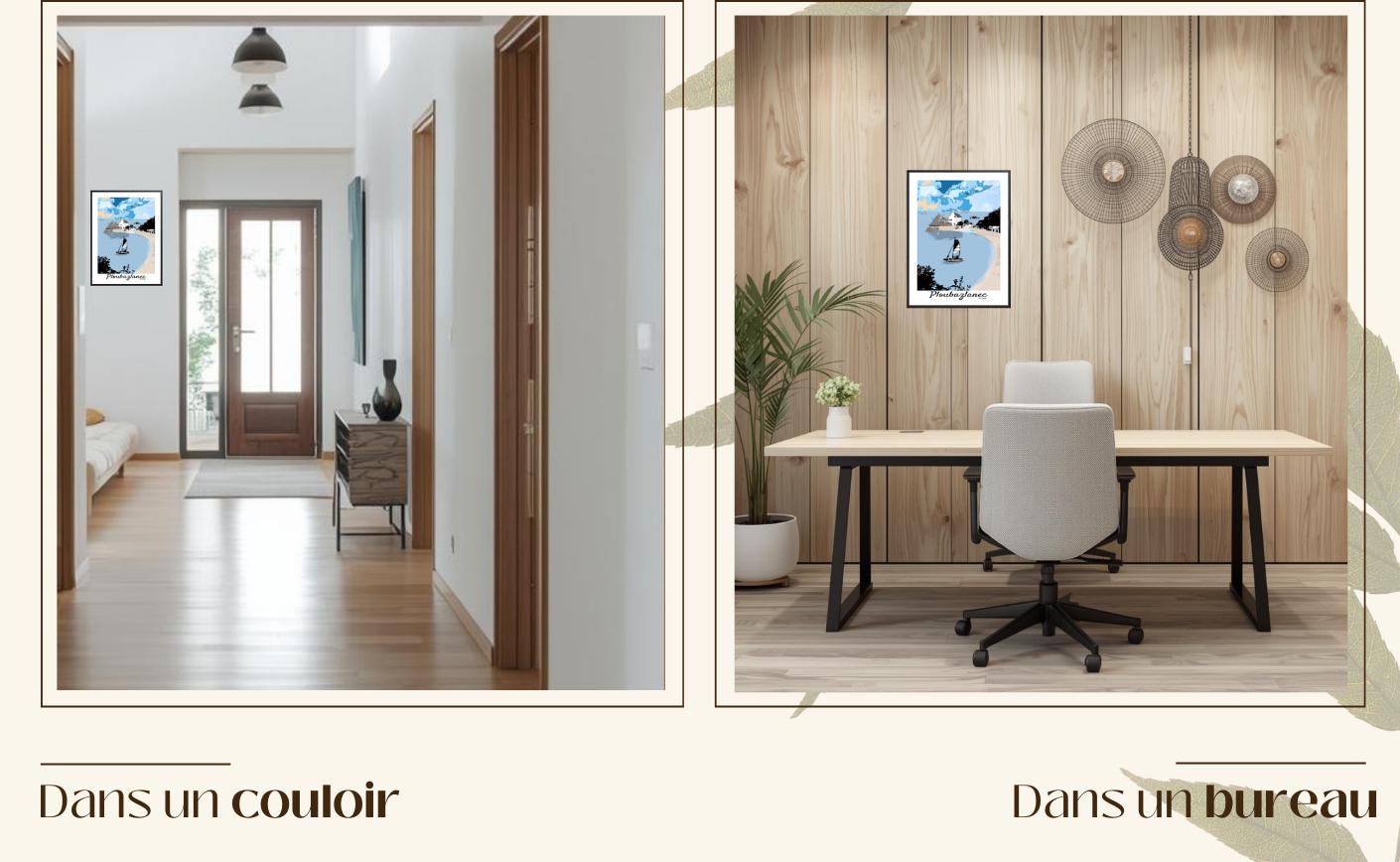En décoration intérieure, cette affiche murale bord de mer pour salon avec un espace bureau structure naturellement l’espace. Elle s’intègre harmonieusement dans un intérieur minimaliste aux tons clairs et naturels. Dans une entrée, ce poster décoratif des Côtes d’Armor crée un accueil lumineux et apaisant. Cette illustration bretonne design attire le regard sans alourdir la pièce.