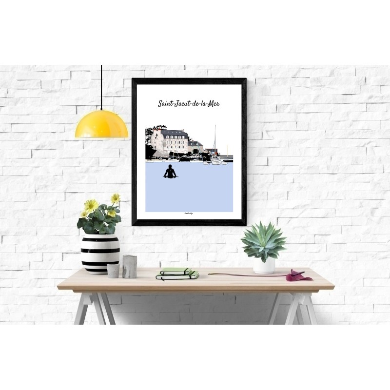 Réalisée dans un style graphique coloré façon bande dessinée, cette affiche décorative bretonne invite à la détente, à la contemplation et à l’évasion au rythme des marées.