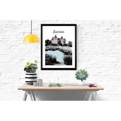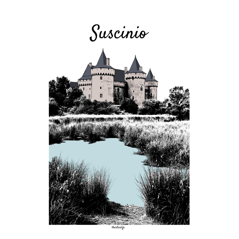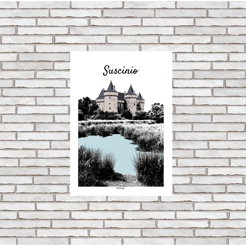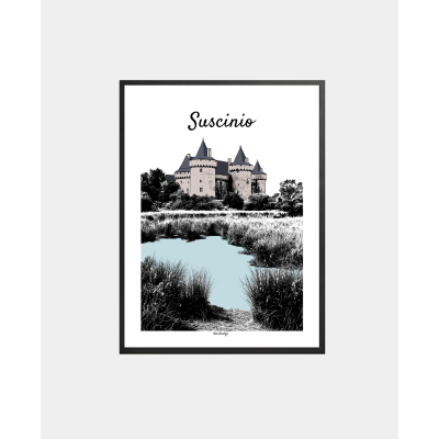 Cette affiche illustrée du Château de Suscinio, vu depuis les marais, met en lumière ce monument emblématique de Sarzeau et de la Presqu’île de Rhuys.