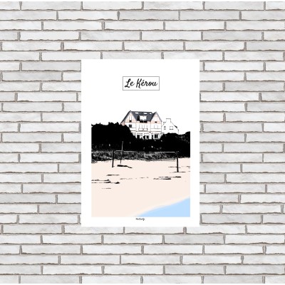 Affiche illustrée de la plage des Souzeaux sur l'Ile de Noirmoutier en Vendée.