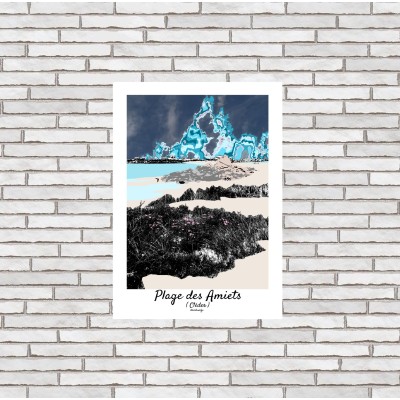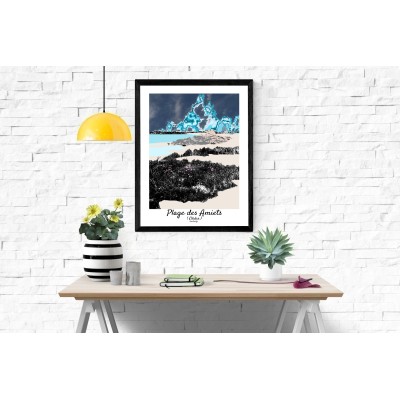 Affiche illustrée de la plage des crapauds à Brignogan dans le Finistère Nord en Bretagne.